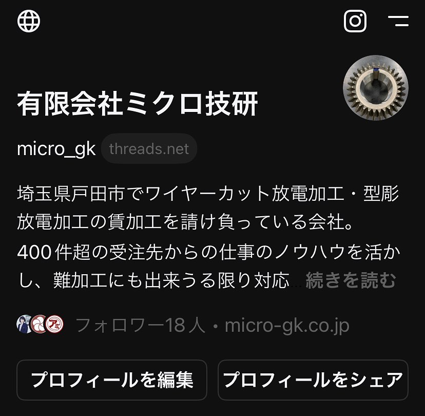 Threads使い始めてみました。どう使うかは…?試行錯誤してみます #threads #ミクロ技研 #戸田市#ワイヤーカット -