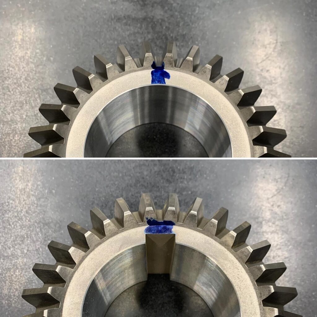 マイタギヤへのキー溝追加工のご依頼。歯車の谷部分にキー溝が来るようにとのご依頼です。
